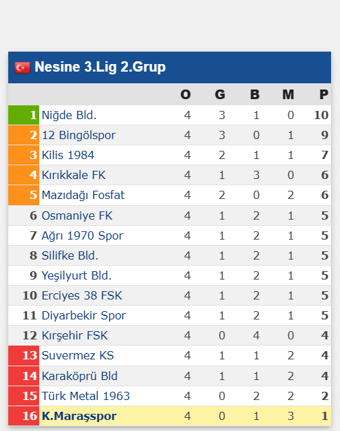 Kahramanmaraşspor’un da mücadele ettiği TFF 3. Lig 2. Grup’ta 2025-2026 sezonunun 4. hafta maçları 27-28 Eylül tarihlerinde oynandı.