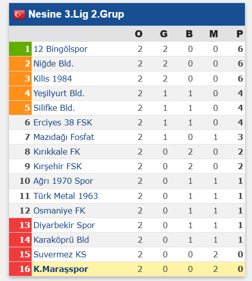 TFF 3. Lig 2. Grup’ta 2025-2026 sezonunun 2. hafta maçları oynandı. Kahramanmaraşspor’un da yer aldığı grupta heyecanlı mücadelelere sahne olan karşılaşmaların ardından puan tablosu şekillenmeye başladı.