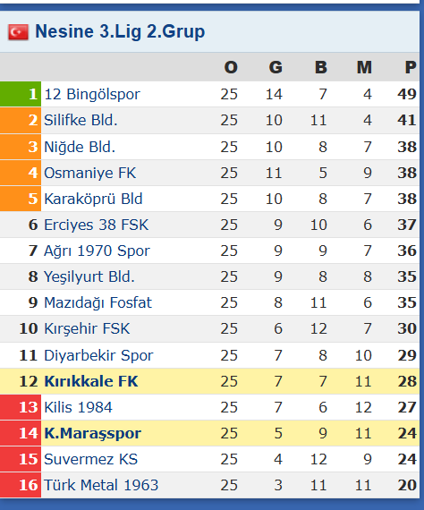 25.03.2026 14:00 | 12 Bingöl Spor – Karpedo Dondurma Kahramanmaraşspor