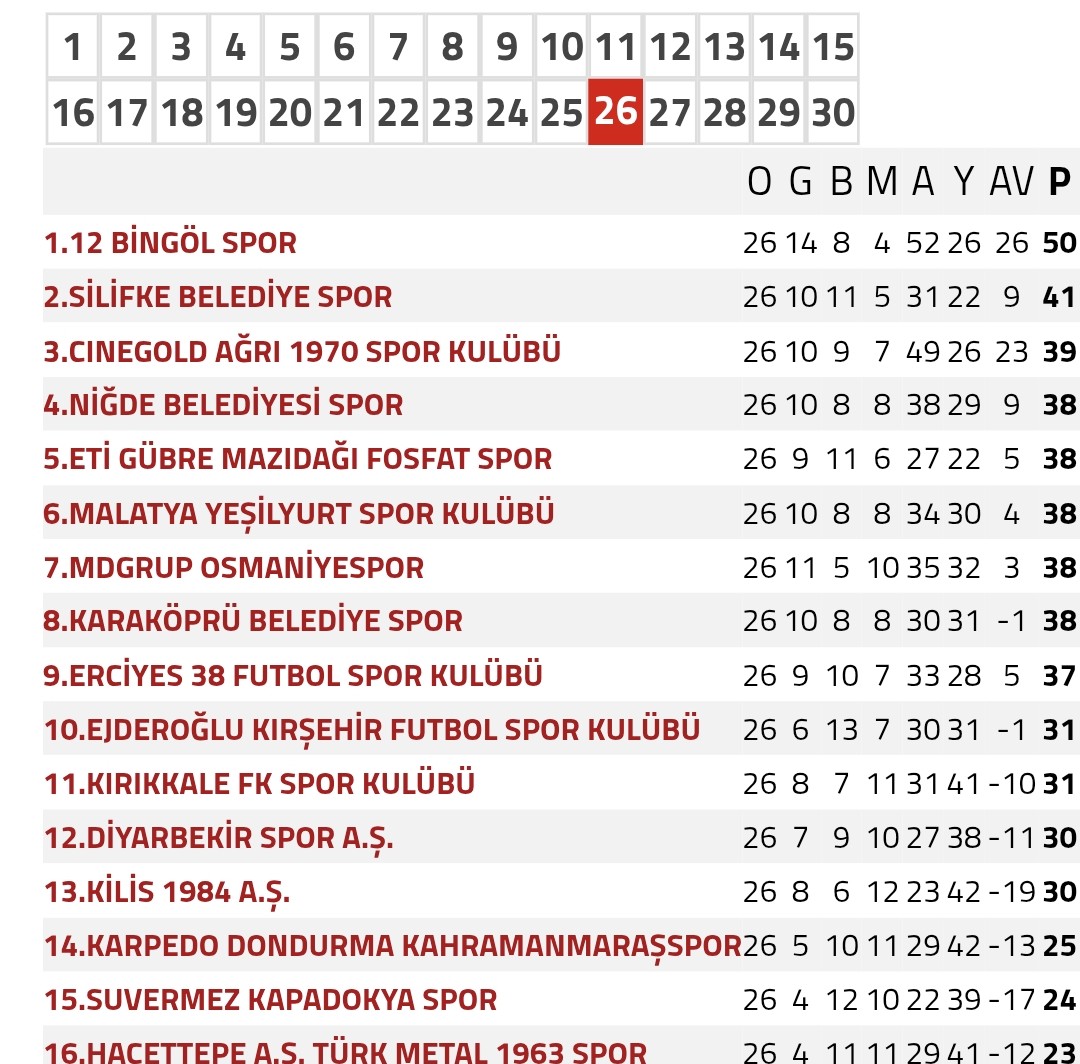 3. Lig 2. Grup 26. Hafta Sonuçları