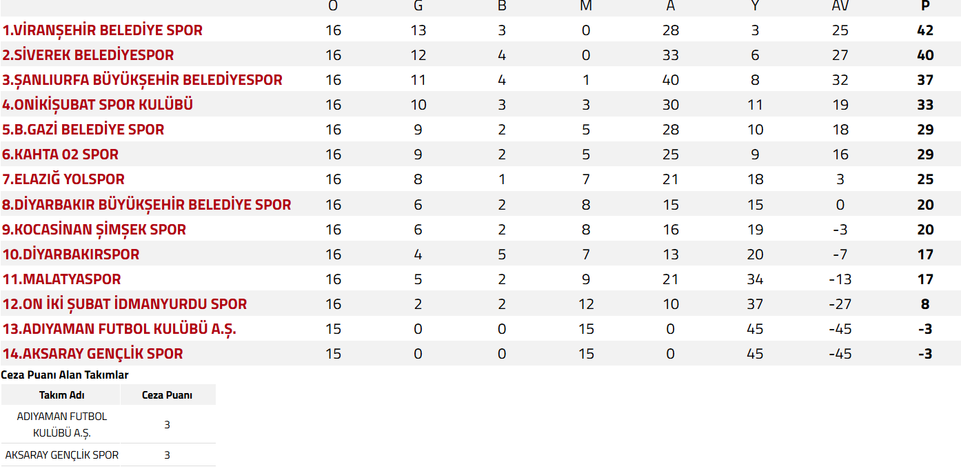 Adıyaman FK A.Ş. 0–3 Şanlıurfa Büyükşehir Belediyespor (hükmen)