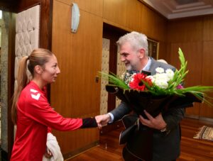 45 kilogram kategorisinde şampiyon olarak altın madalyayı Türkiye’ye kazandıran İbrahim Bera Kıvrak da başarılarıyla dikkat çekti. Genç sporcuları makamında ağırlayan Başkan Fırat Görgel, sporcuları tek tek tebrik ederek başarılarından dolayı büyük mutluluk duyduklarını ifade etti.