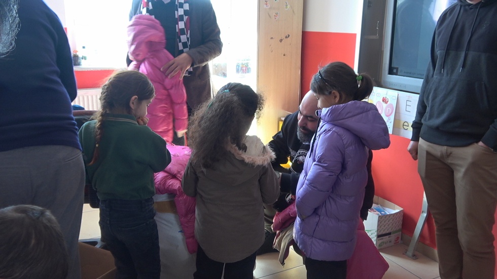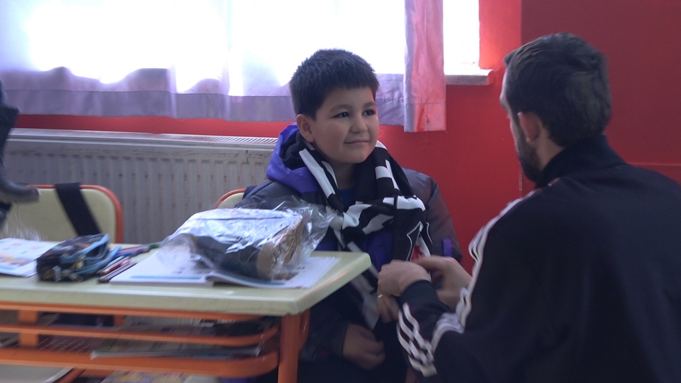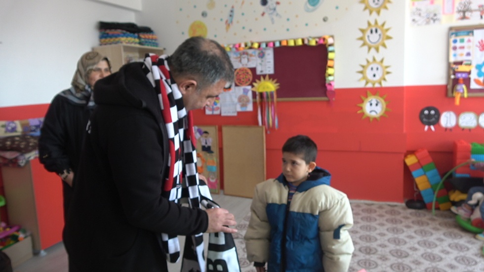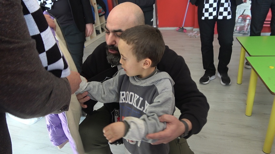 Avrupa Kartalları heyeti ve Kahramanmaraşlı Beşiktaşlılar, sınıfları tek tek gezerek çocuklara montlarını giydirdi.