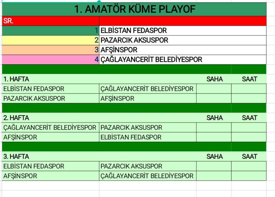 Sezonun sona ermesiyle birlikte Play-Off’a yükselen takımlar da netlik kazandı. A Grubu’ndan Çağlayancerit Belediyespor ve Pazarcık Aksuspor, B Grubu’ndan ise Elbistan Fedaspor ve Afşinspor adını Play-Off grubuna yazdırdı.