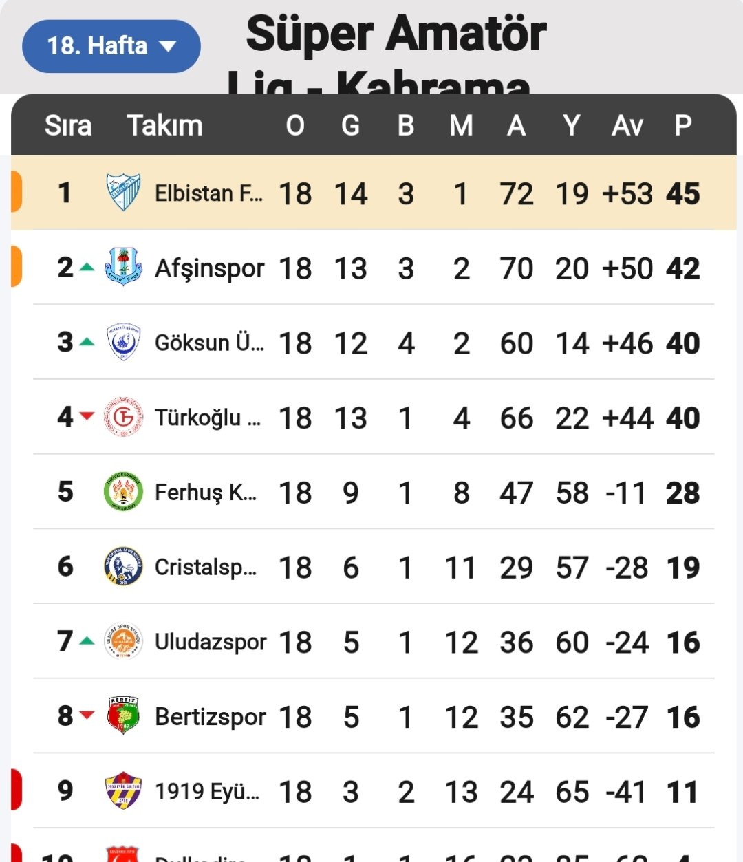 Kahramanmaraş 1. Amatör Lig Sona Erdi! 18. Hafta Sonuçları, Maç Programı ve Puan Durumu