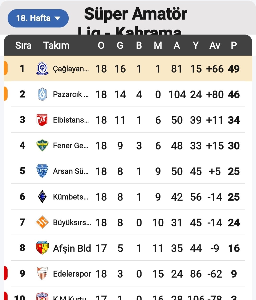 18:00 | Kahramanmaraş Kurtuluşspor 1–5 Fener Gençlikspor (Adem Şahan)
