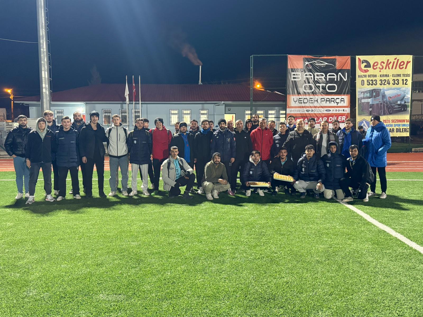 Pazarcık Aksuspor Kulüp Başkanı Hüseyin Şahin Bozdağ, antrenman sonrası oyunculara tatlı ikramında bulundu.