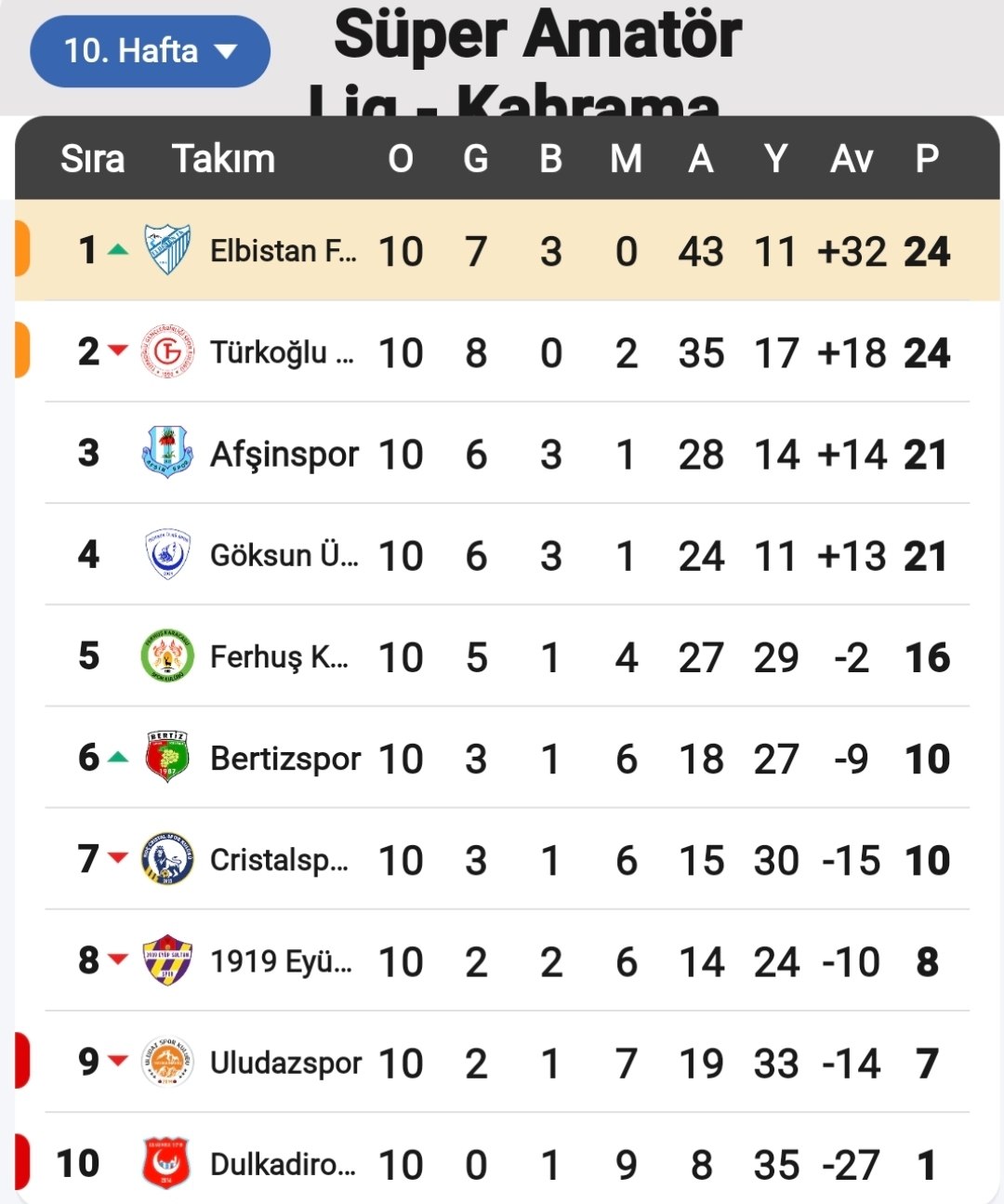 B Grubu’nda ise zirve el değiştirdi. Elbistan Feda Spor, sahasında aldığı galibiyetin ardından liderliğe yükselerek haftanın en dikkat çeken takımı oldu.