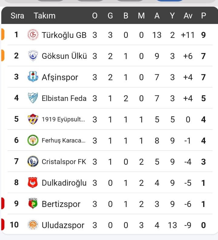 Kahramanmaraş 1. Amatör Lig 3. Hafta Sonuçları