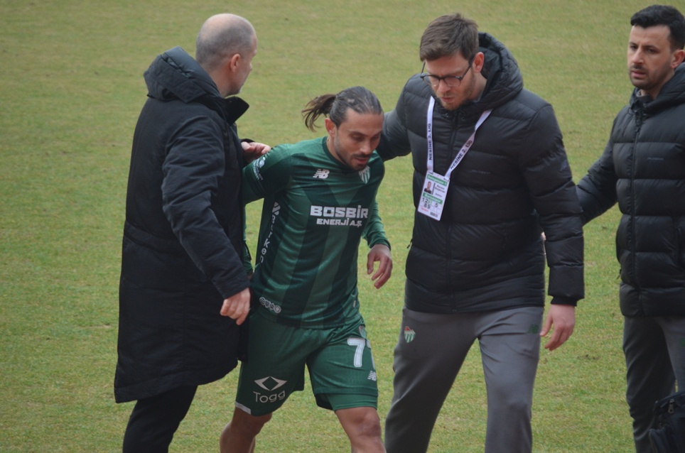 50’ Bursaspor’da İlhan Depe, ceza sahasında kendini yere bıraktığı gerekçesiyle sarı kart gördü.
