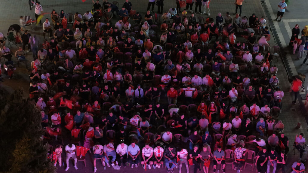 Arena Riga’da oynanan ve büyük çekişmeye sahne olan karşılaşmayı dev ekranda takip eden vatandaşlar, A Milli Erkek Basketbol Takımına destek tezahüratlarıyla adeta stat atmosferi oluşturdu.
