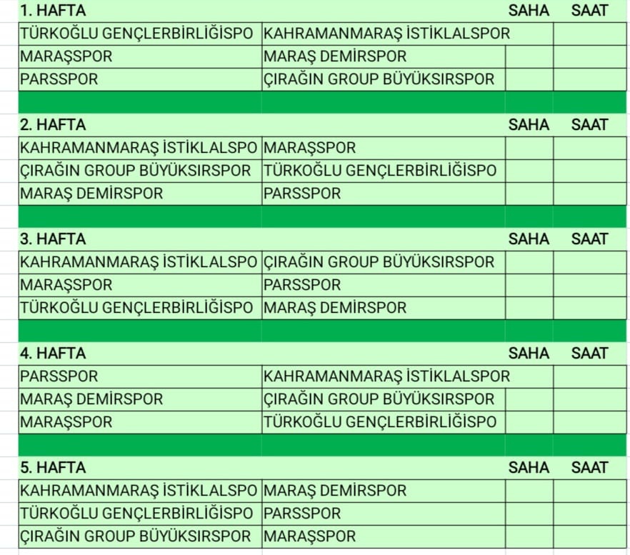 Kahramanmaraş U12 Ligi Play-Off Fikstürü Çekildi