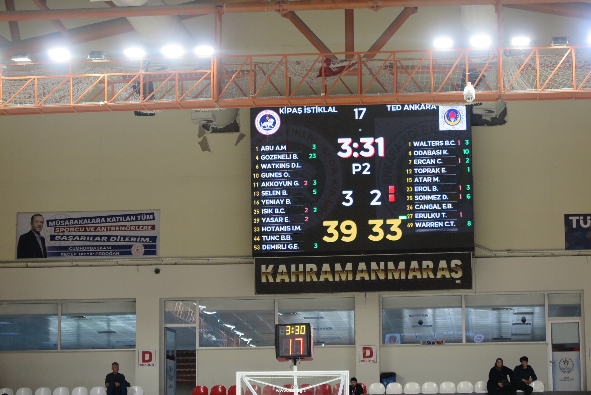 İlk periyodu Temsilcimiz Kipaş İstiklal Basketbol, TED Ankara Kolejliler karşısında 19-16 önde kapattı. İlk yarıyı Kipaş İstiklal Basketbol 41-37 önde kapattı.