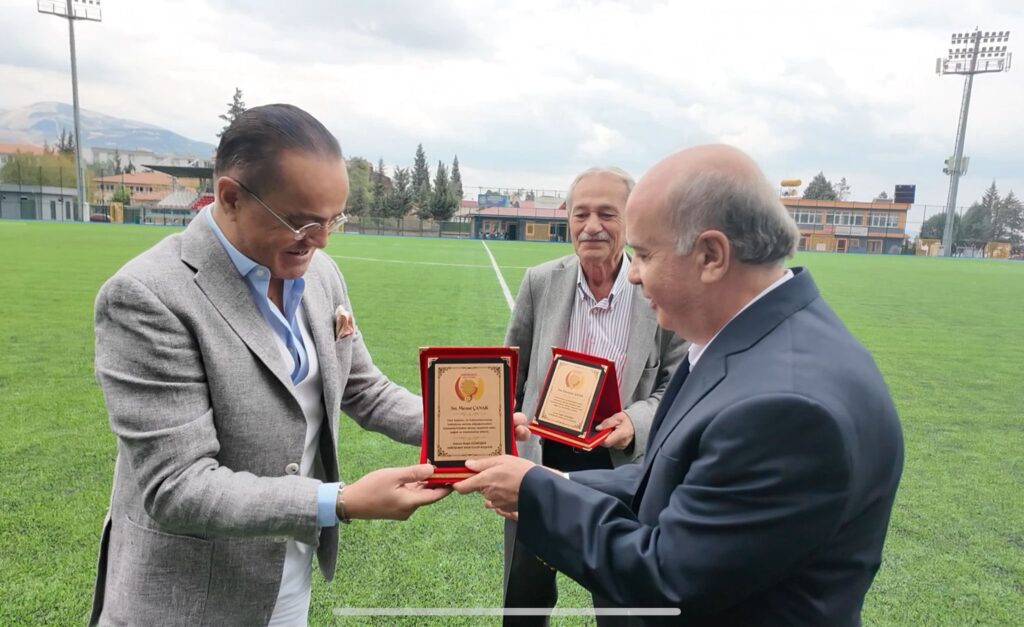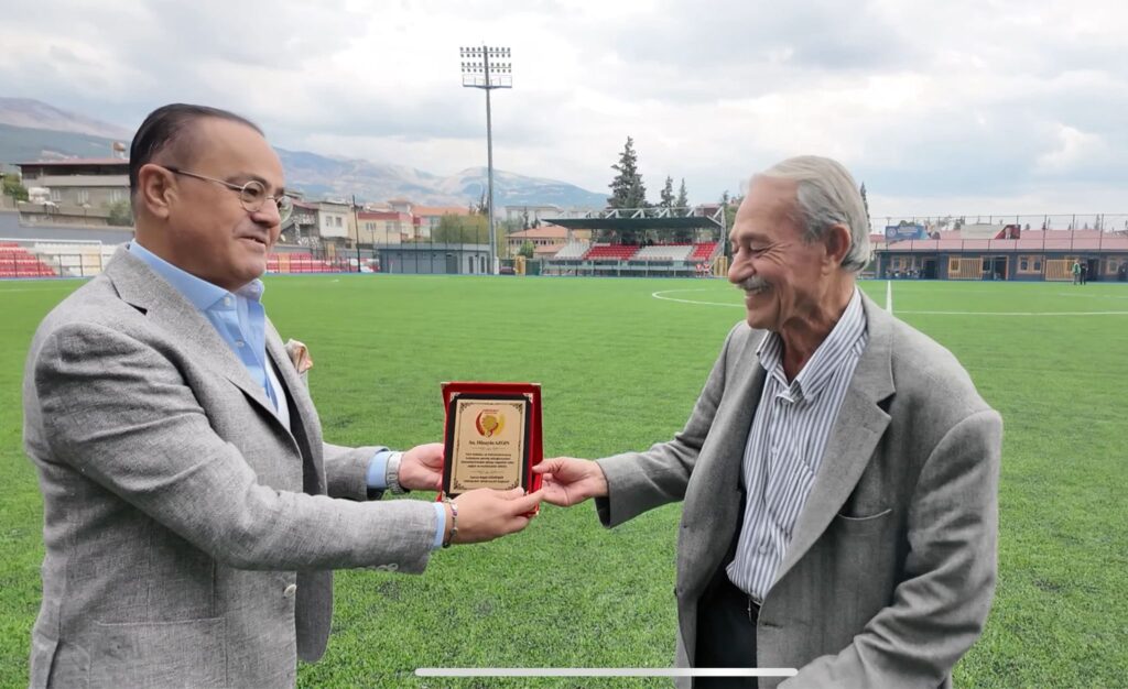 Kahramanmaraş’ın emektar futbol adamları Hüseyin Azgın ve Mesut Çanak’a, şehrin sporuna verdikleri uzun yıllara dayanan emeklerinden dolayı Onikişubatspor Kulüp Başkanı Harun Reşit Gümüşer tarafından teşekkür plaketi takdim edildi.