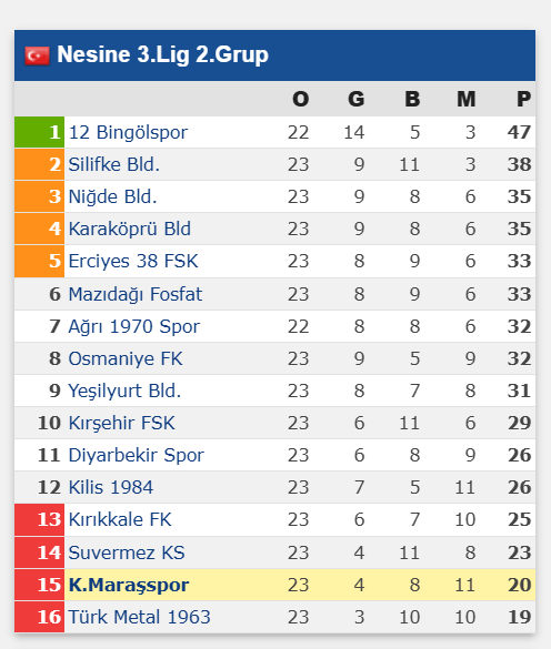 TFF 3. Lig 2. Grup’ta 23. Hafta Tamamlandı: İşte Puan Durumu Sonuçlar ve 24. Hafta Programı