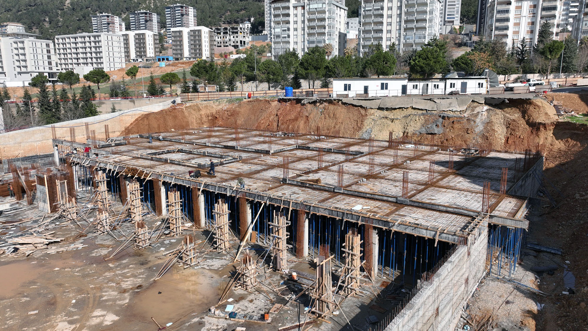 Kahramanmaraş Büyükşehir Belediyesi tarafından gençlik vizyonu doğrultusunda hayata geçirilen Kahramanmaraş Gençlik ve Spor Merkezi projesinde çalışmalar tüm hızıyla devam ediyor. Büyükşehir Belediye Başkanı Fırat Görgel öncülüğünde başlatılan ve şehrin geleceğine yatırım olarak nitelendirilen dev proje hem fiziki büyüklüğü hem de kapsamı itibarıyla Türkiye’nin örnek gençlik yatırımları arasında yer almaya hazırlanıyor. Onikişubat Yamaçtepe Mahallesi’nde yükselen merkezde üstyapı imalatlarına geçildi. Sahada yoğun bir tempoyla çalışan ekipler, demir donatı ve betonarme uygulamalarını planlanan takvim doğrultusunda sürdürüyor. Projenin her aşaması titizlikle yürütülürken, modern mühendislik teknikleri ve dayanıklı yapı standartları esas alınıyor.