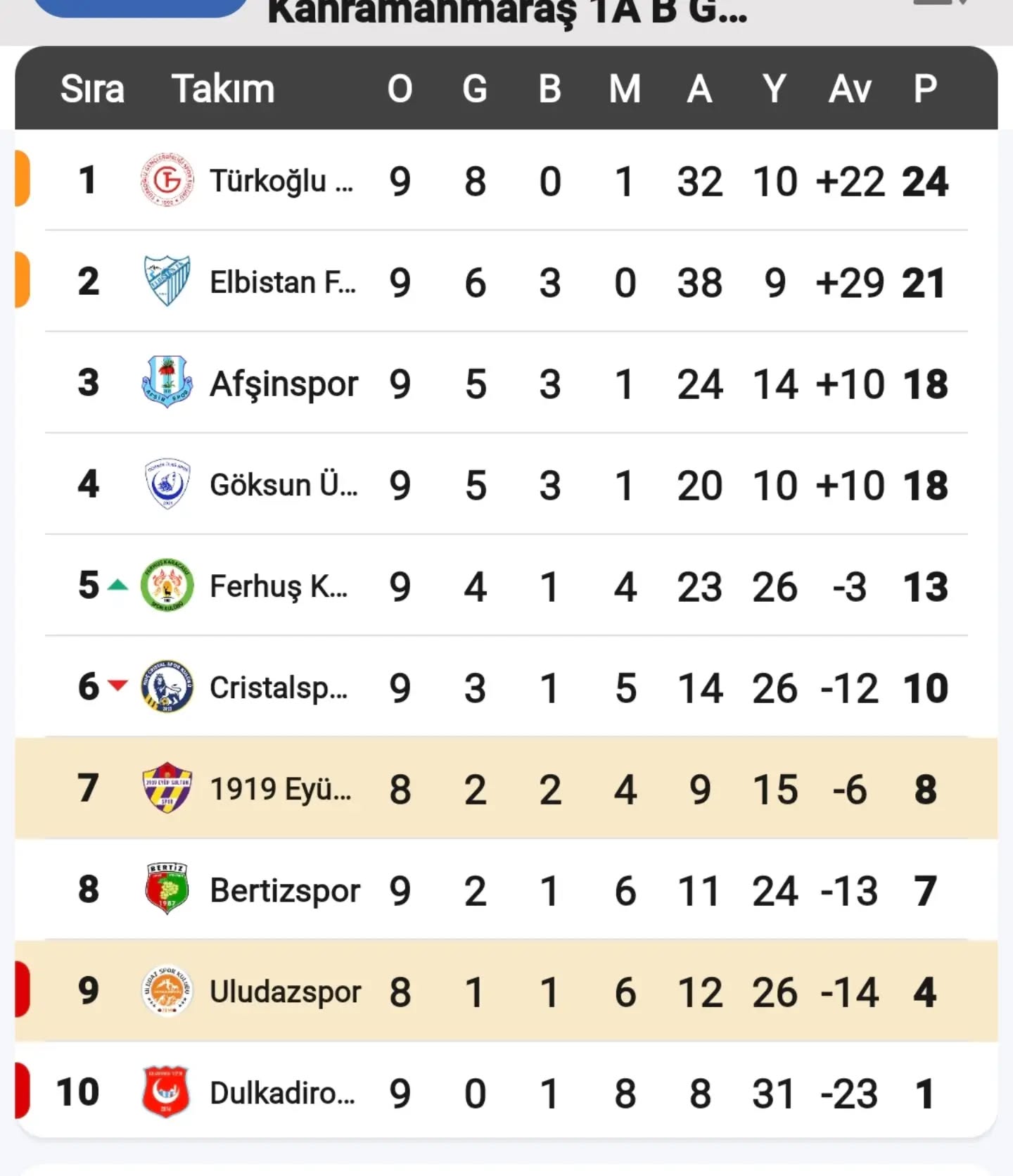 Ligin 9. haftasında grubun iddialı ekiplerinden Afşinspor’u 2-1 mağlup eden Türkoğlu temsilcisi, bu kritik galibiyetle birlikte zirvedeki yerini sağlamlaştırdı. Sezon boyunca istikrarlı bir grafik çizen kırmızı-siyahlı ekip, hem oyun gücü hem de mücadeleci yapısıyla dikkat çekti.